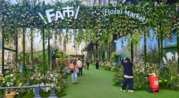 相比传统花卉市场,这里布置更精美、玩法更多元。花市毗邻商场,不仅出售品类丰富的鲜花产品,还有几十米的花艺布景墙与时装展,同时满足顾客赏花、购物与出片需求。市民在下班途中、逛街间隙步入花市,只需几分钟便可选购喜爱的花朵,并拍出一张春季油画质感照片。开在商圈里的花市,让“赏花经济”更便民、更多元、更时尚。